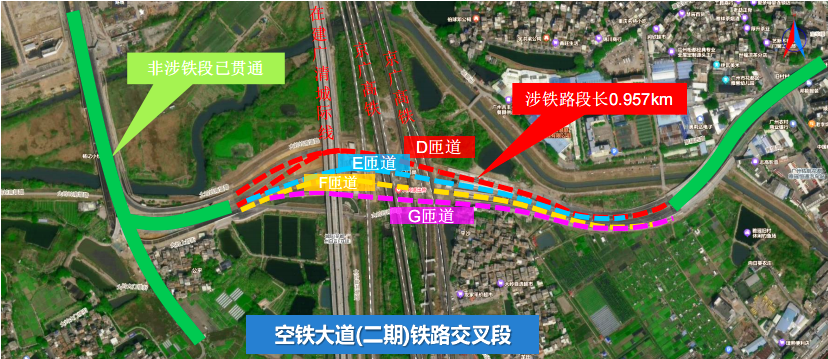 本次主线贯通,攻克了全线建设中最艰难的下穿铁路段。这段长约1公里的路段,是整个空铁大道(二期)工程最后也是最关键的攻坚节点。